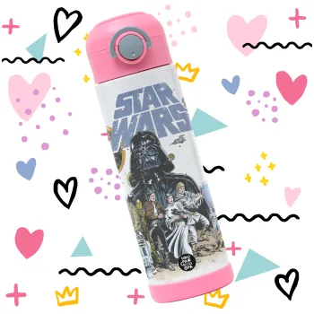 Star Wars, Παιδικό παγούρι θερμό, ανοξείδωτο, με καλαμάκι ασφαλείας, ΡΟΖ (500ml)