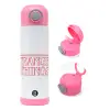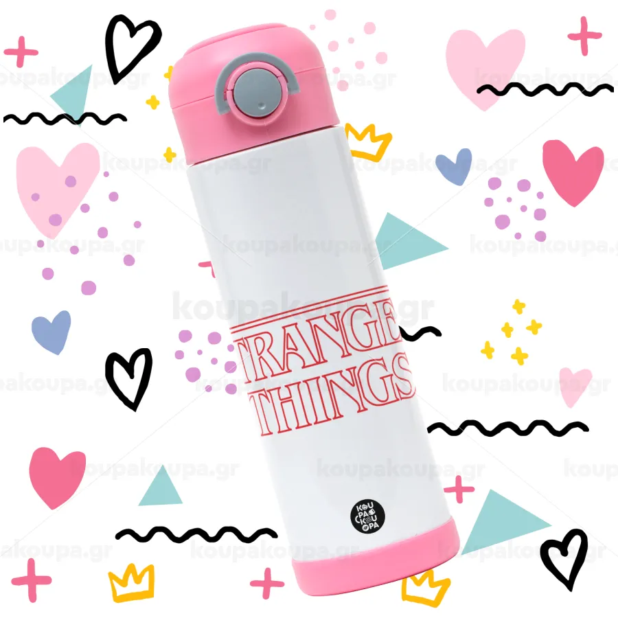 Stranger Things Logo, Παιδικό παγούρι θερμό, ανοξείδωτο, με καλαμάκι ασφαλείας, ΡΟΖ (500ml)