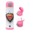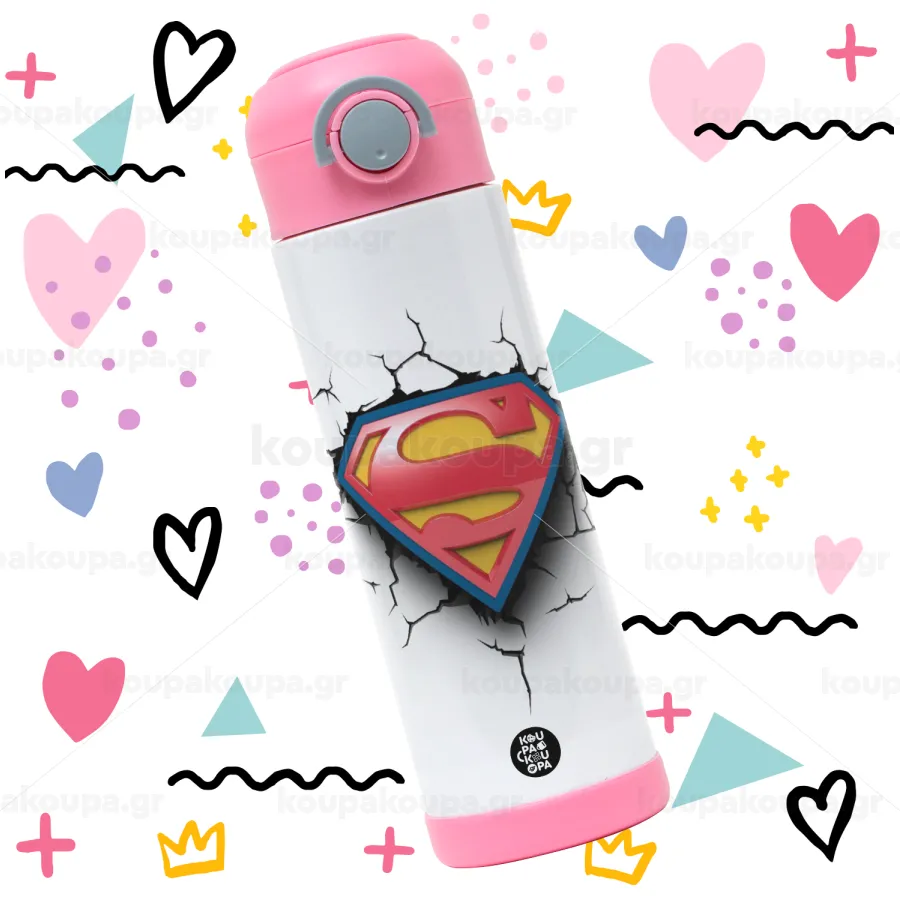 Superman cracked, Παιδικό παγούρι θερμό, ανοξείδωτο, με καλαμάκι ασφαλείας, ΡΟΖ (500ml)