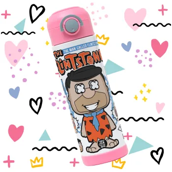 The flintstones, Παιδικό παγούρι θερμό, ανοξείδωτο, με καλαμάκι ασφαλείας, ΡΟΖ (500ml)