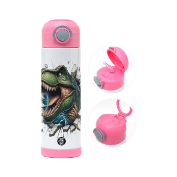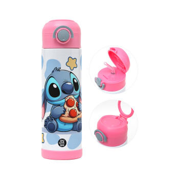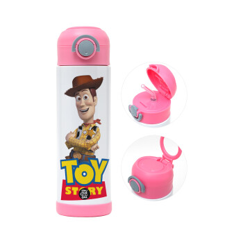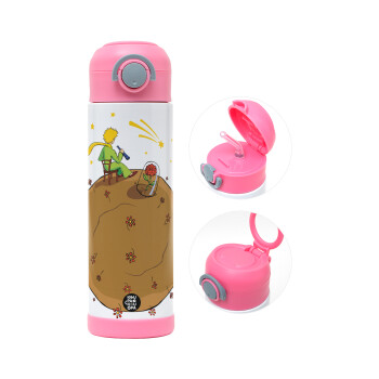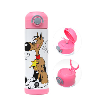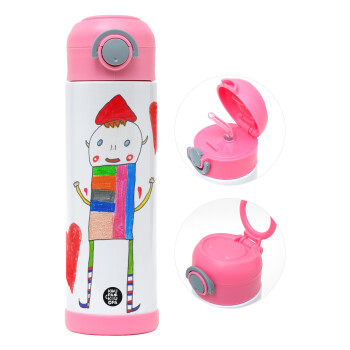 Παιδικό παγούρι θερμό, ανοξείδωτο, με καλαμάκι ασφαλείας, ΡΟΖ (500ml) με θέμα Παιδικά