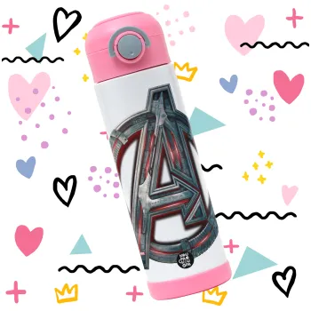 Avengers, Παιδικό παγούρι θερμό, ανοξείδωτο, με καλαμάκι ασφαλείας, ΡΟΖ (500ml)