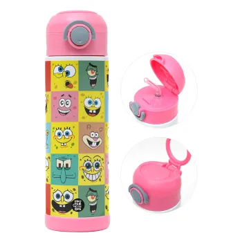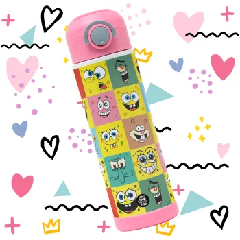 Ο μπομπ και οι φίλοι του, Παιδικό παγούρι θερμό, ανοξείδωτο, με καλαμάκι ασφαλείας, ΡΟΖ (500ml)