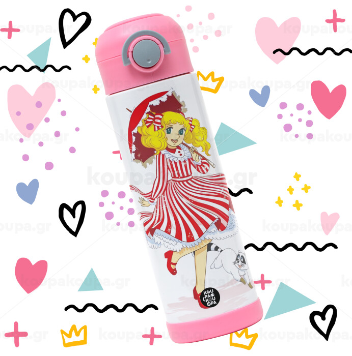 Candy, Παιδικό παγούρι θερμό, ανοξείδωτο, με καλαμάκι ασφαλείας, ΡΟΖ (500ml)