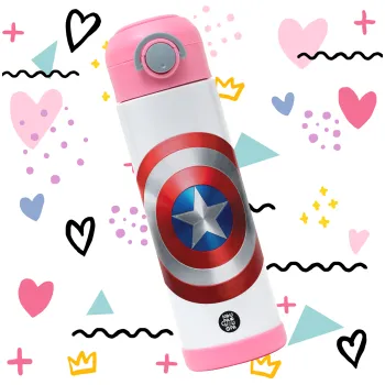 Captain America, Παιδικό παγούρι θερμό, ανοξείδωτο, με καλαμάκι ασφαλείας, ΡΟΖ (500ml)