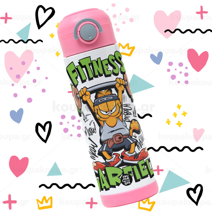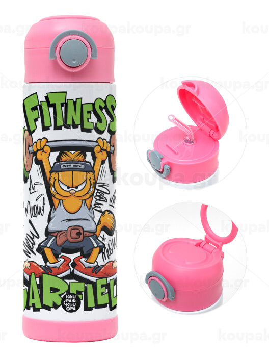 Garfield Fitness, Παιδικό παγούρι θερμό, ανοξείδωτο, με καλαμάκι ασφαλείας, ΡΟΖ (500ml)