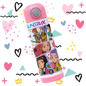 Huntrix Kpop Girls, Παιδικό παγούρι θερμό, ανοξείδωτο, με καλαμάκι ασφαλείας, ΡΟΖ (500ml)