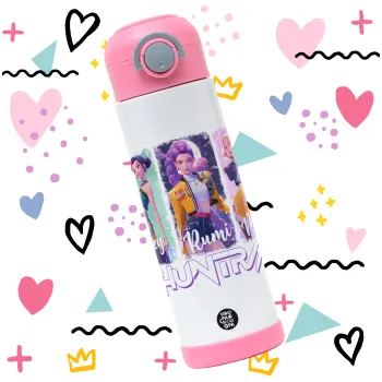 HUNTR/X K-pop girl group, Παιδικό παγούρι θερμό, ανοξείδωτο, με καλαμάκι ασφαλείας, ΡΟΖ (500ml)