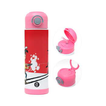 Τέλος τα πλαστικά μπουκάλια! Παρουσιάζουμε το απόλυτο μπουκάλι θερμό για τα παιδιά σας! Κατασκευασμένο από ανοξείδωτο ατσάλι, το μπουκάλι μας χωράει 500ml υγρό και είναι ιδανικό για το σχολείο και τις υπαίθριες δραστηριότητες. Με το απαλό άκρο, οι μικροί μας φίλοι μπορούν να πίνουν κατευθείαν από το μπουκάλι χωρίς καλαμάκι. Το ευρύ άνοιγμα του μας επιτρέπει να το καθαρίσουμε εύκολα για άψογη υγιεινή! Λαβή για εύκολη μεταφορά, καπάκι βιδωτό για ασφάλεια και λαβή για άνετο κράτημα. Επίσης, το μπουκάλι μας είναι BPA FREE, διατηρεί το πόσιμο δροσερό και δροσιστικό έξω από το ψυγείο.