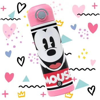Μίκυ Μάους, Παιδικό παγούρι θερμό, ανοξείδωτο, με καλαμάκι ασφαλείας, ΡΟΖ (500ml)
