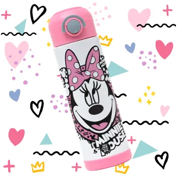 Minnie mouse, Παιδικό παγούρι θερμό, ανοξείδωτο, με καλαμάκι ασφαλείας, ΡΟΖ (500ml)