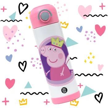 Peppa pig Queen, Παιδικό παγούρι θερμό, ανοξείδωτο, με καλαμάκι ασφαλείας, ΡΟΖ (500ml)