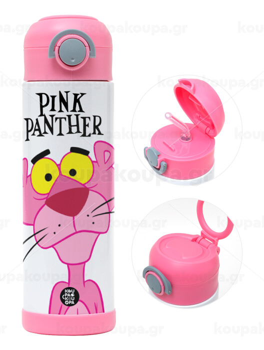 Pink Panther cartoon, Παιδικό παγούρι θερμό, ανοξείδωτο, με καλαμάκι ασφαλείας, ΡΟΖ (500ml)