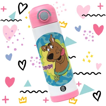 Scooby Doo, Παιδικό παγούρι θερμό, ανοξείδωτο, με καλαμάκι ασφαλείας, ΡΟΖ (500ml)