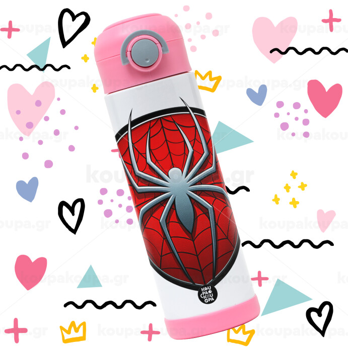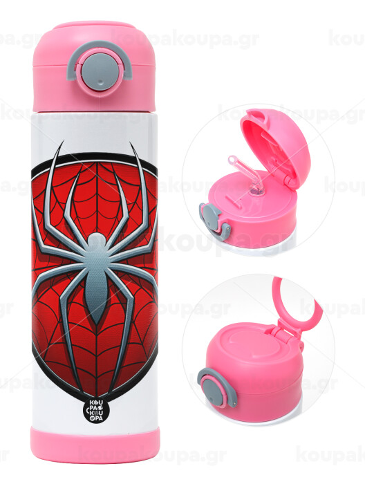 Spider-man, Παιδικό παγούρι θερμό, ανοξείδωτο, με καλαμάκι ασφαλείας, ΡΟΖ (500ml)