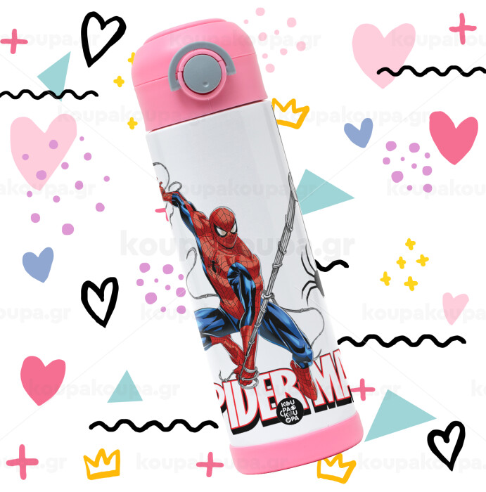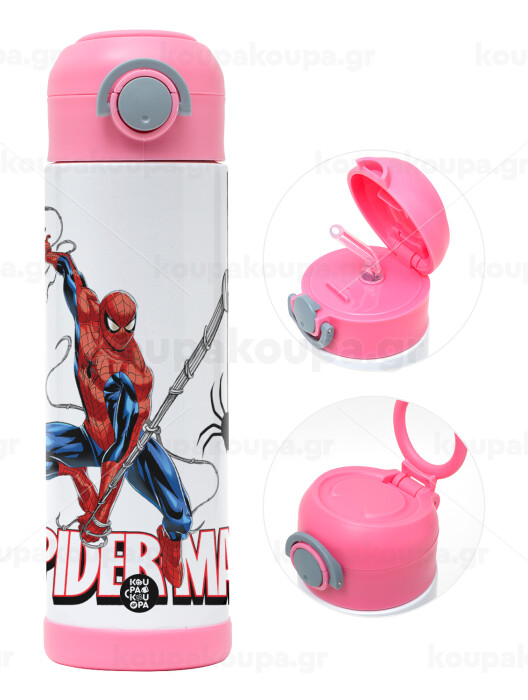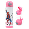 Spiderman fly, Παιδικό παγούρι θερμό, ανοξείδωτο, με καλαμάκι ασφαλείας, ΡΟΖ (500ml)