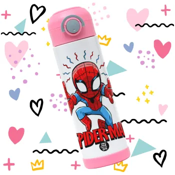 Spiderman flying, Παιδικό παγούρι θερμό, ανοξείδωτο, με καλαμάκι ασφαλείας, ΡΟΖ (500ml)