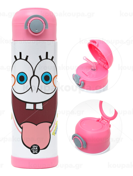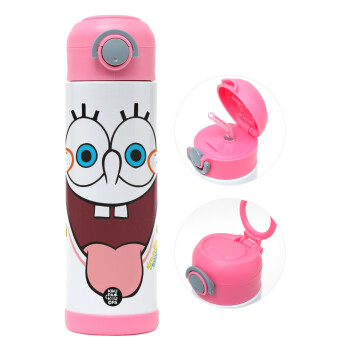 Μπομπ Σφουγγαράκης χαμόγελο, Παιδικό παγούρι θερμό, ανοξείδωτο, με καλαμάκι ασφαλείας, ΡΟΖ (500ml)