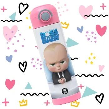 The boss baby, Παιδικό παγούρι θερμό, ανοξείδωτο, με καλαμάκι ασφαλείας, ΡΟΖ (500ml)