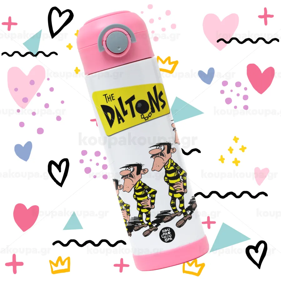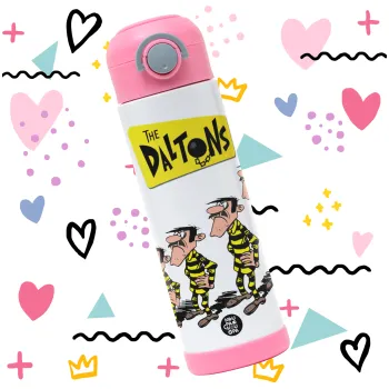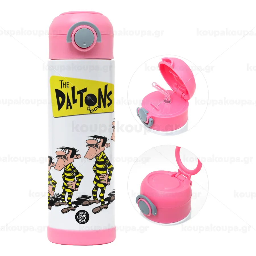 The Daltons, Παιδικό παγούρι θερμό, ανοξείδωτο, με καλαμάκι ασφαλείας, ΡΟΖ (500ml)