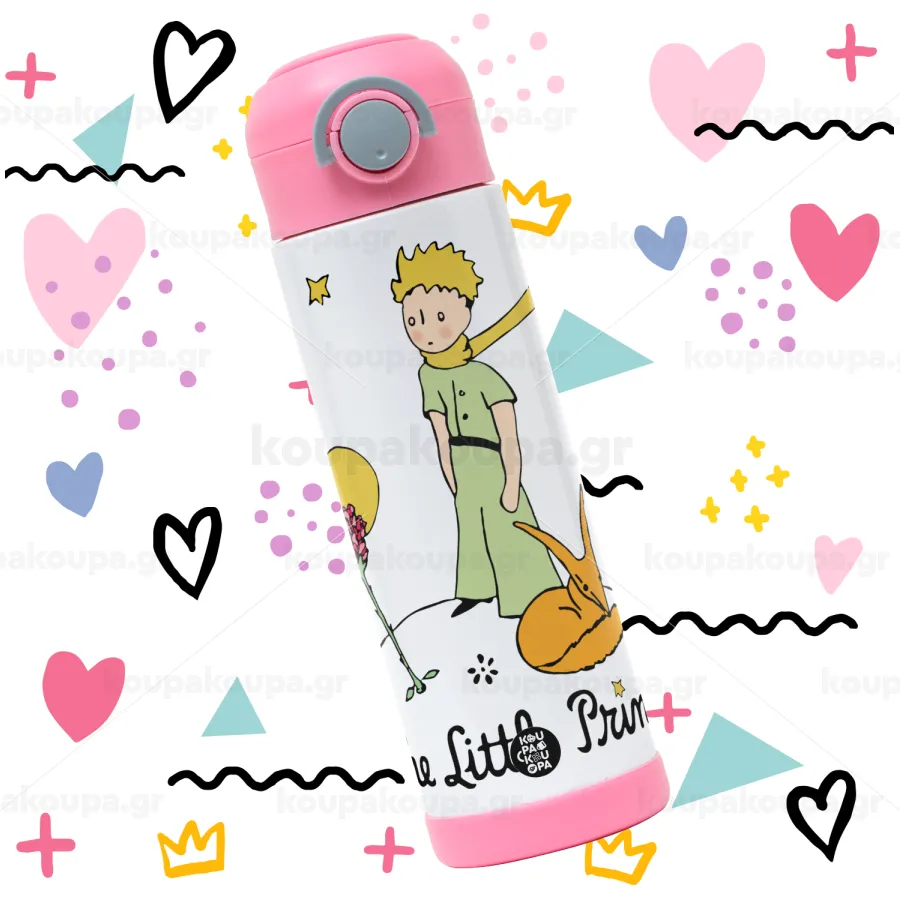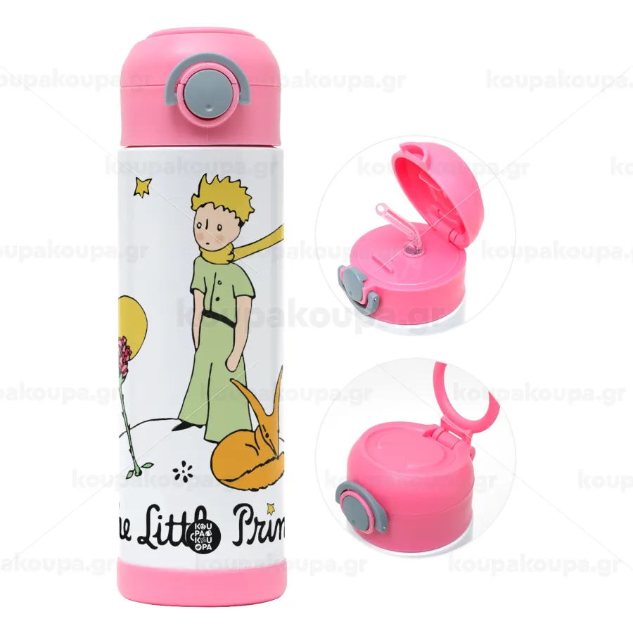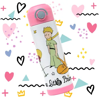 Ο μικρός πρίγκιπας classic, Παιδικό παγούρι θερμό, ανοξείδωτο, με καλαμάκι ασφαλείας, ΡΟΖ (500ml)
