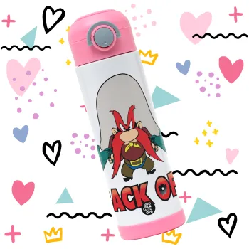 Yosemite Sam Back OFF, Παιδικό παγούρι θερμό, ανοξείδωτο, με καλαμάκι ασφαλείας, ΡΟΖ (500ml)