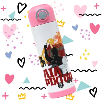 Ηλία ρίχτοοο!!!, Παιδικό παγούρι θερμό, ανοξείδωτο, με καλαμάκι ασφαλείας, ΡΟΖ (500ml)