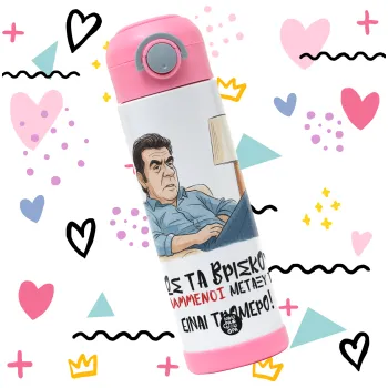 ΠΩΣ ΤΑ ΒΡΙΣΚΟΥΝ ΟΙ ΒΛΑ....ΝΟΙ ΜΕΤΑΞΥ ΤΟΥΣ, ΕΙΝΑΙ ΤΡΟΜΕΡΟ!!!, Παιδικό παγούρι θερμό, ανοξείδωτο, με καλαμάκι ασφαλείας, ΡΟΖ (500ml)