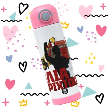 Ηλία ρίχτο!, Παιδικό παγούρι θερμό, ανοξείδωτο, με καλαμάκι ασφαλείας, ΡΟΖ (500ml)