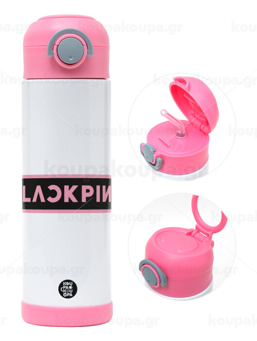 BLACKPINK, Παιδικό παγούρι θερμό, ανοξείδωτο, με καλαμάκι ασφαλείας, ΡΟΖ (500ml)