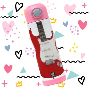 Guitar stratocaster, Παιδικό παγούρι θερμό, ανοξείδωτο, με καλαμάκι ασφαλείας, ΡΟΖ (500ml)