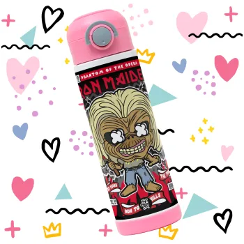 Iron maiden (eddie), Παιδικό παγούρι θερμό, ανοξείδωτο, με καλαμάκι ασφαλείας, ΡΟΖ (500ml)