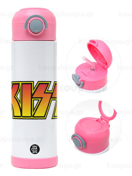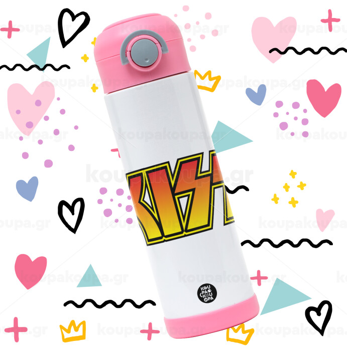 KISS, Παιδικό παγούρι θερμό, ανοξείδωτο, με καλαμάκι ασφαλείας, ΡΟΖ (500ml)