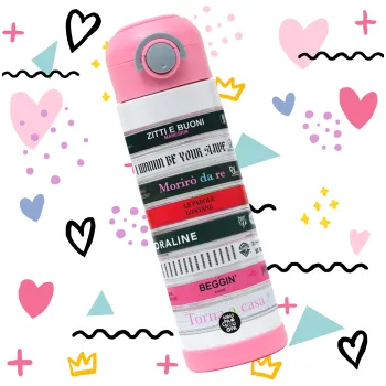 Maneskin Cassette, Παιδικό παγούρι θερμό, ανοξείδωτο, με καλαμάκι ασφαλείας, ΡΟΖ (500ml)