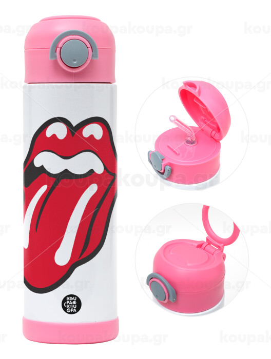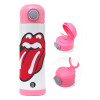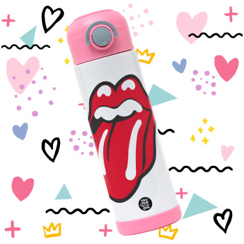 Rolling Stones Kiss, Παιδικό παγούρι θερμό, ανοξείδωτο, με καλαμάκι ασφαλείας, ΡΟΖ (500ml)