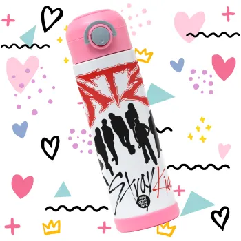 Stray Kids Boy band, Παιδικό παγούρι θερμό, ανοξείδωτο, με καλαμάκι ασφαλείας, ΡΟΖ (500ml)