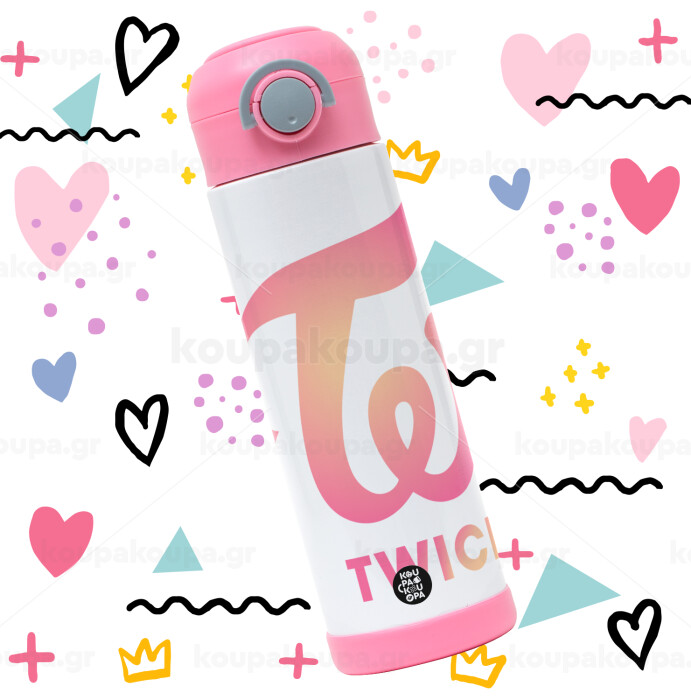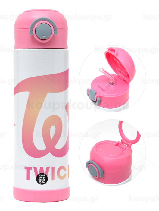 Twice, Παιδικό παγούρι θερμό, ανοξείδωτο, με καλαμάκι ασφαλείας, ΡΟΖ (500ml)