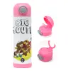 Big mouth, Παιδικό παγούρι θερμό, ανοξείδωτο, με καλαμάκι ασφαλείας, ΡΟΖ (500ml)