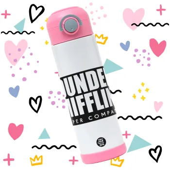 Dunder Mifflin, Inc Paper Company, Παιδικό παγούρι θερμό, ανοξείδωτο, με καλαμάκι ασφαλείας, ΡΟΖ (500ml)