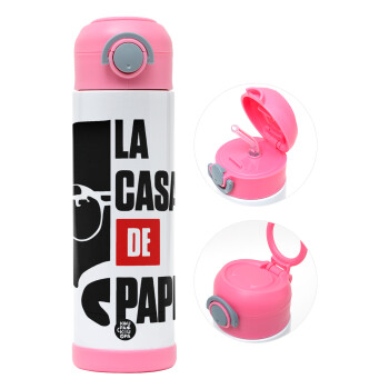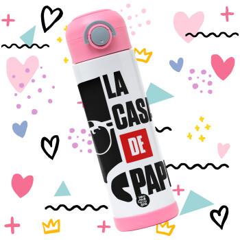 La casa de papel, Παιδικό παγούρι θερμό, ανοξείδωτο, με καλαμάκι ασφαλείας, ΡΟΖ (500ml)