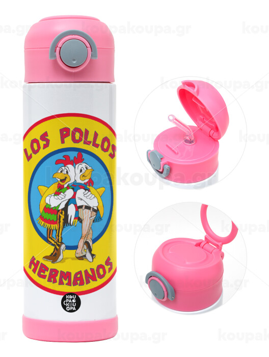 Los Pollos Hermanos, Παιδικό παγούρι θερμό, ανοξείδωτο, με καλαμάκι ασφαλείας, ΡΟΖ (500ml)