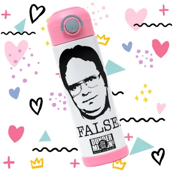 The office Dwight, Παιδικό παγούρι θερμό, ανοξείδωτο, με καλαμάκι ασφαλείας, ΡΟΖ (500ml)
