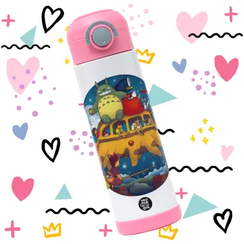 Totoro Catbus, Παιδικό παγούρι θερμό, ανοξείδωτο, με καλαμάκι ασφαλείας, ΡΟΖ (500ml)