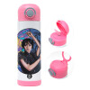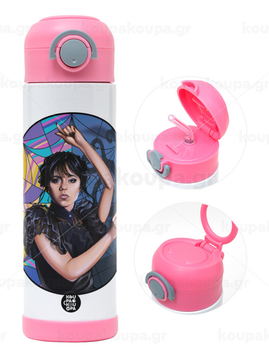 Wednesday dance, Παιδικό παγούρι θερμό, ανοξείδωτο, με καλαμάκι ασφαλείας, ΡΟΖ (500ml)