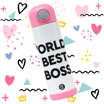 World's best boss, Παιδικό παγούρι θερμό, ανοξείδωτο, με καλαμάκι ασφαλείας, ΡΟΖ (500ml)