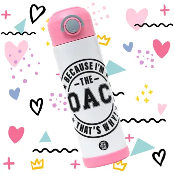 Because i'm the Coach, Παιδικό παγούρι θερμό, ανοξείδωτο, με καλαμάκι ασφαλείας, ΡΟΖ (500ml)