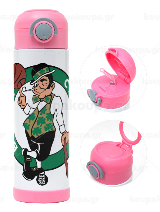 Boston Celtics, Παιδικό παγούρι θερμό, ανοξείδωτο, με καλαμάκι ασφαλείας, ΡΟΖ (500ml)