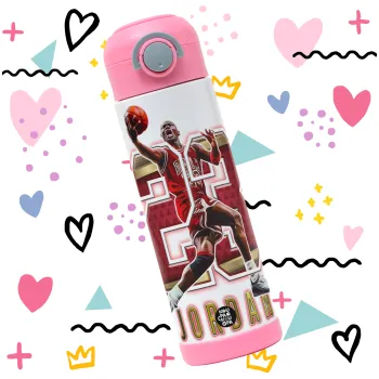 Jordan 23, Παιδικό παγούρι θερμό, ανοξείδωτο, με καλαμάκι ασφαλείας, ΡΟΖ (500ml)