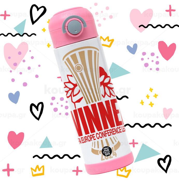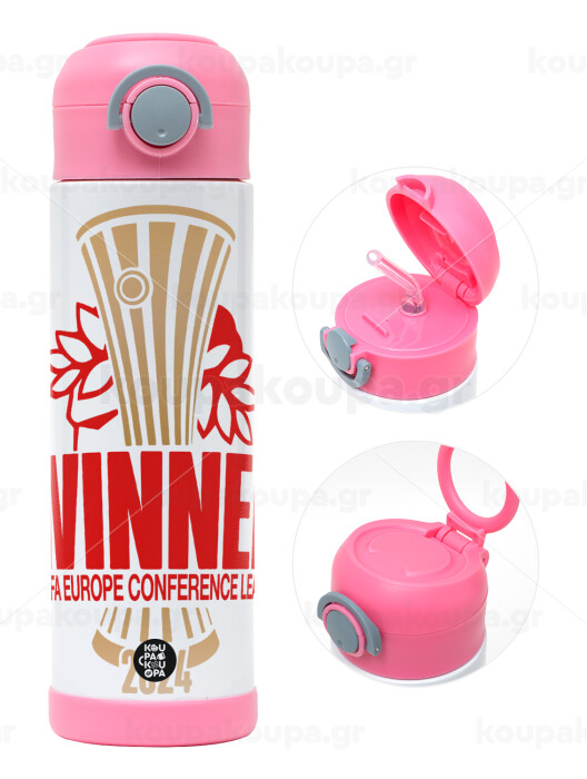 Europa Conference League WINNER, Παιδικό παγούρι θερμό, ανοξείδωτο, με καλαμάκι ασφαλείας, ΡΟΖ (500ml)