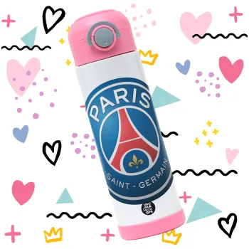 Paris Saint-Germain F.C., Παιδικό παγούρι θερμό, ανοξείδωτο, με καλαμάκι ασφαλείας, ΡΟΖ (500ml)
